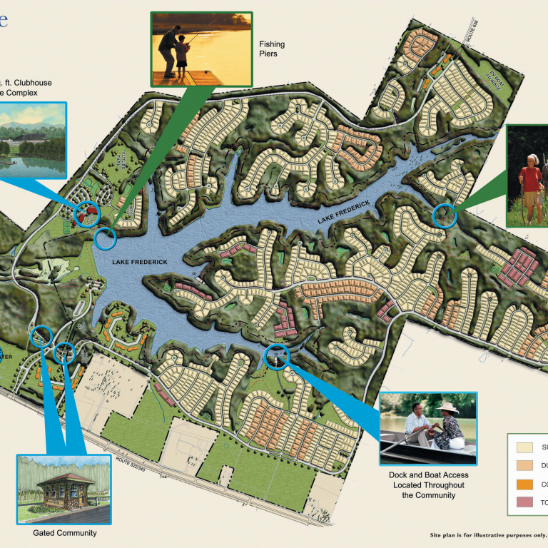 Oxbridge worked with multiple national homebuilders to create an architectural and landscape design style unique to the Shenandoah Valley while preserving the tremendous natural resources of Lake Frederick.